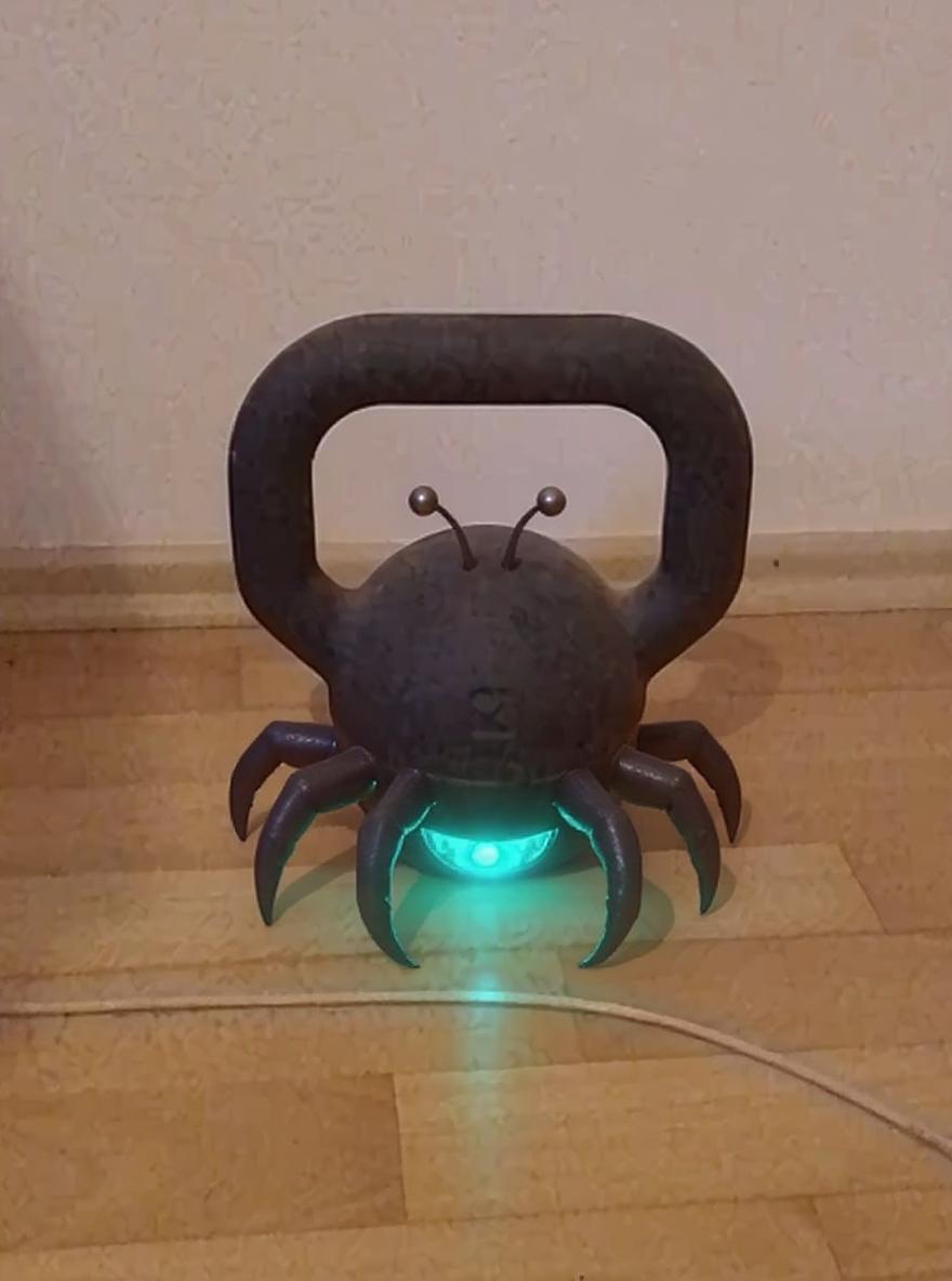 The Zátiší duch is a rare, urban-dwelling cryptid endemic to the apartment complexes of Central Europe, especially in Brno. It is known for its remarkable ability to mimic and partially merge with metallic household objects, particularly those associated with human strength and routine, like kettlebells. The cryptid's body is composed of a flexible, semi-organic metallic shell with a spherical core from which extend multi-segmented limbs that can retract to fit within or around objects. Its most unique trait is its ability to absorb kinetic energy from nearby human activity, powering brief bursts of magnetic manipulation—allowing it to rearrange or animate small metal items. At rest, it is nearly indistinguishable from an ordinary object, its skin altering texture and temperature to match its host. When threatened, it emits a faint, harmonizing hum that disrupts nearby electronic devices, a defensive adaptation to the urban environment. Folklore associates it with the restless spirits of objects left unused, and sightings are rare, often mistaken for tricks of the light or the movement of household items. The Zátiší duch is an evolutionary marvel, demonstrating convergent adaptation to magnetic and kinetic energies, possibly as a result of centuries of cohabitation with humans in dense urban settings.