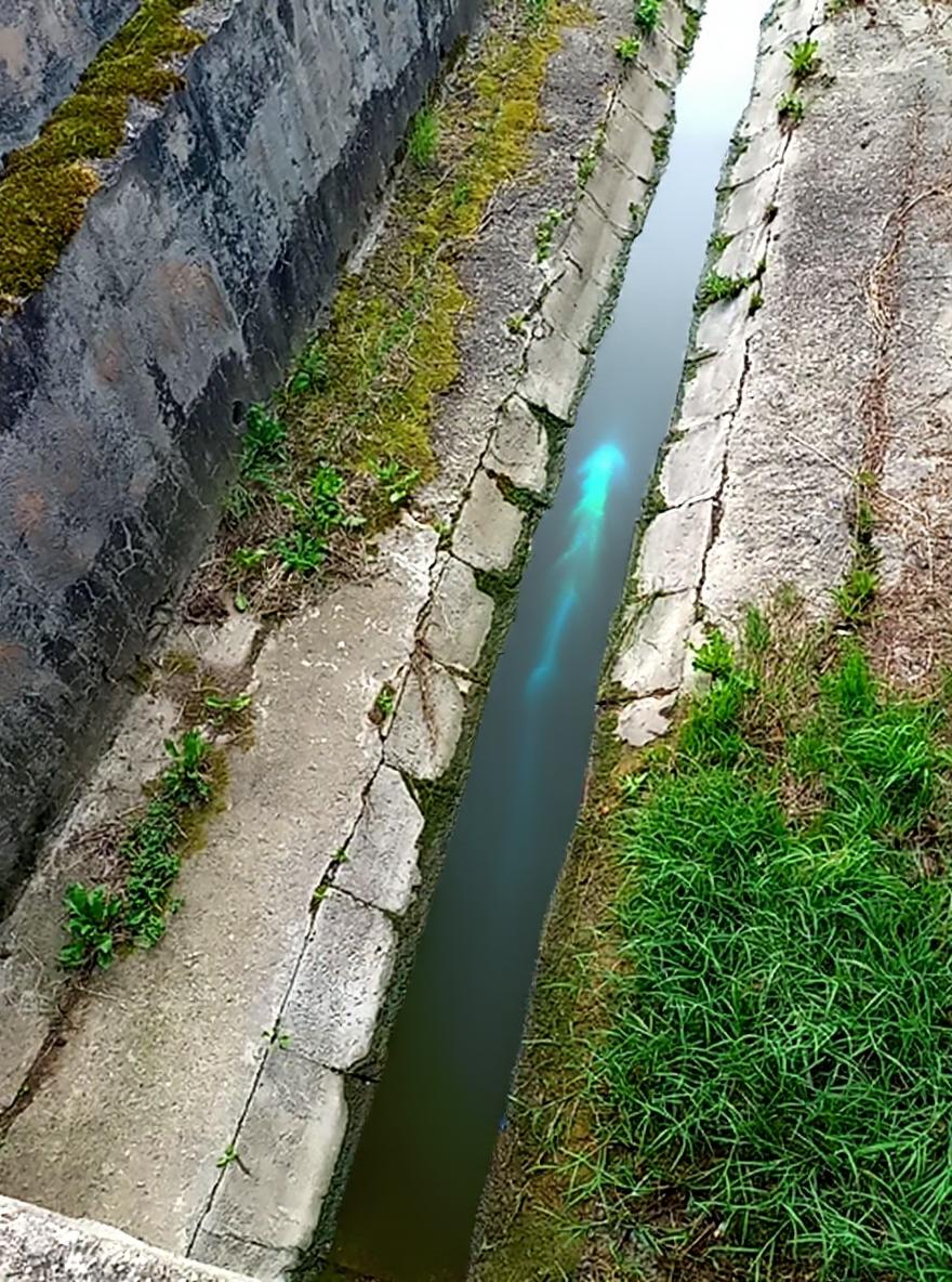 The Vlnivý přízrak, or Ripple Wraith, is a cryptid uniquely adapted to urban waterways of Central Europe, especially the Czech Republic. Measuring up to 1 meter in length but only 10 cm wide, its elongated, ribbon-like body is comprised of a gelatinous, semi-transparent tissue that refracts and distorts light. This gives the illusion of moving water, making it nearly invisible except for subtle distortions or unnatural ripples on the surface. The creature displays two traits never seen in real animals: (1) it secretes a localized field that manipulates water surface tension, allowing it to 'paint' complex patterns that deter predators and confuse prey, and (2) its body can phase between partially aquatic and partially gaseous states, enabling it to vanish into mist when threatened. It is most active on hot, sunny days, feeding on detritus and small aquatic insects, and is rarely seen except as a fleeting shimmer. The Ripple Wraith is believed to be the origin of local tales about water spirits seen only out of the corner of one's eye, and its ability to manipulate water tension is hypothesized to be due to a unique protein in its skin that interacts with environmental ions, disrupting the normal behavior of water molecules.