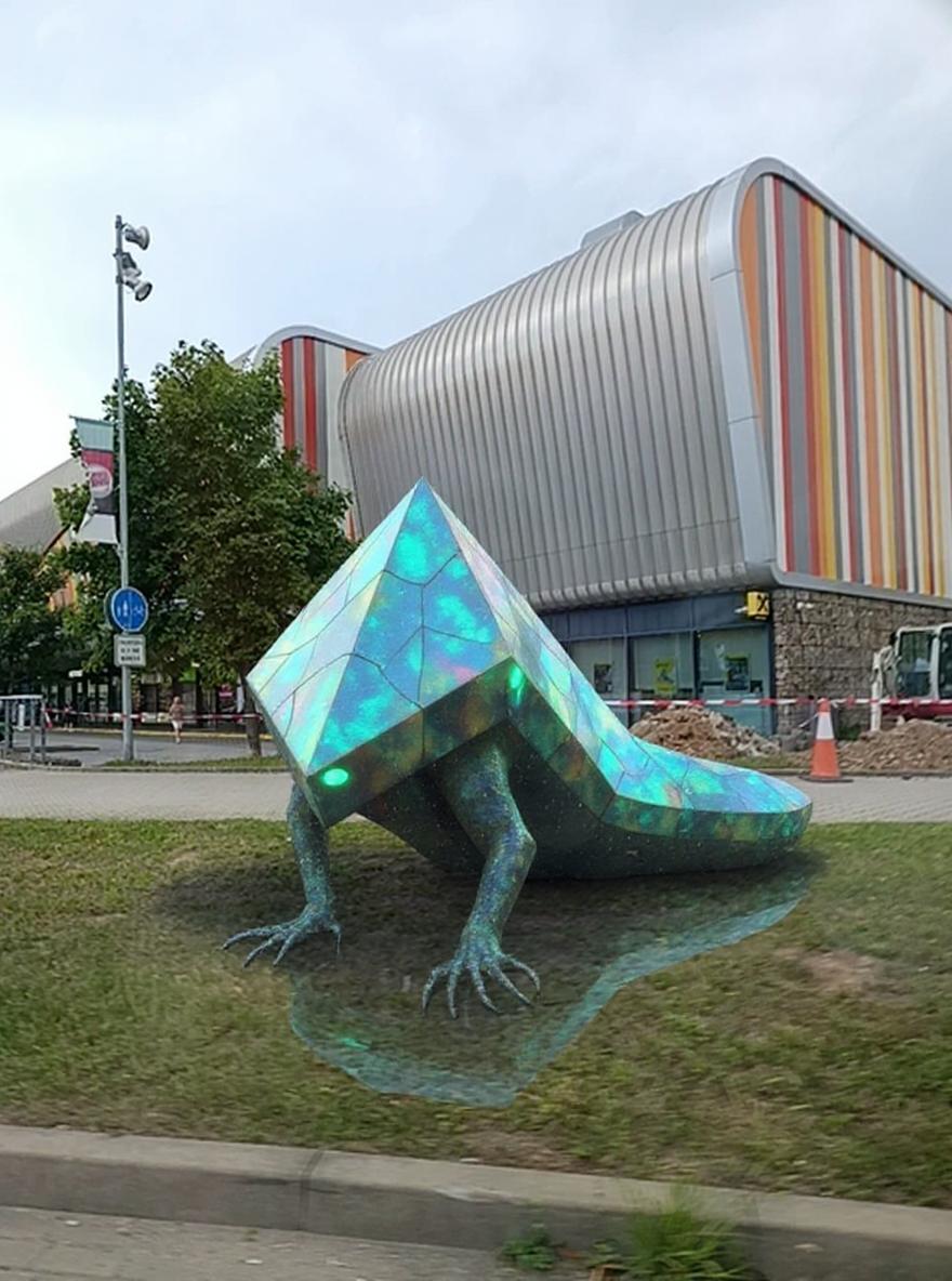 Brněnský Blýskostín, or the Brno Flash-Shadow, is an exceedingly rare cryptid said to dwell in the transitional zones between urban structures and green spaces in Brno. It is typically sighted during humid, rainy evenings and is known for its semi-transparent, iridescent hide that reflects and refracts environmental colors and textures, rendering it nearly invisible except for a shifting outline and brief flashes of colored light. The Blýskostín possesses a modular, segmented body with hexagonal plates capable of instantaneously morphing to mimic nearby surfaces, such as concrete, grass, or even metal panels. It moves via rippling undulations, like a living shadow, and can compress itself to fit into impossibly narrow gaps. Uniquely, the Blýskostín can generate localized electrical fields to temporarily disrupt digital cameras and sensors, explaining why it is only ever glimpsed by the naked eye. Its evolutionary adaptation is theorized to be a rapid response to urban encroachment, merging traits from cephalopods and urban-dwelling insects. The Blýskostín is a shy omnivore, feeding on urban detritus, small rodents, and plant matter, and is believed to play a role in local folklore as a guardian of the threshold between city and nature. Its weaknesses include intolerance to direct sunlight and extremely dry conditions, making it an almost exclusively nocturnal and rainy-weather apparition.