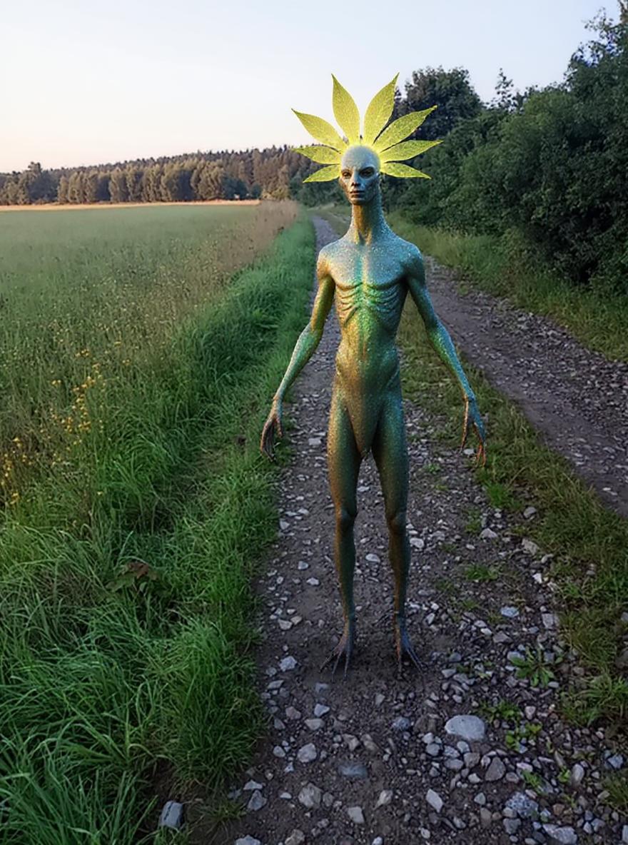 Lesní Stínosvětlo, or 'Forest Shadowlight,' is a rare, breathtaking cryptid said to haunt the borderlands of Bohemian forests and meadows. It stands 1.8 meters tall when upright, with a semi-translucent, iridescent hide reminiscent of dew on cobwebs, subtly shifting between shades of green, silver, and gold. The creature's limbs are long and slender, ending in root-like appendages that allow it to move silently across stony paths and vanish into undergrowth. Its head features bioluminescent, petal-like frills that glow faintly at dusk, confusing predators and enchanting those who glimpse it. The Stínosvětlo's body is segmented, with flexible, feathered ridges along its spine that shimmer when disturbed. Nocturnal and shy, this cryptid is a master of camouflage, using chromatophores and refractive skin cells to blend into the shifting light and shadows. It feeds on ambient moisture and pollen, using its frilled antennae to collect both, and is believed to play a vital role in the health of meadow-edge ecosystems. Folklore holds that it can briefly phase out of sight, a phenomenon explained by its skin's ability to refract and scatter light almost perfectly. Weaknesses include sensitivity to heat and drought, confining it to humid, temperate regions.