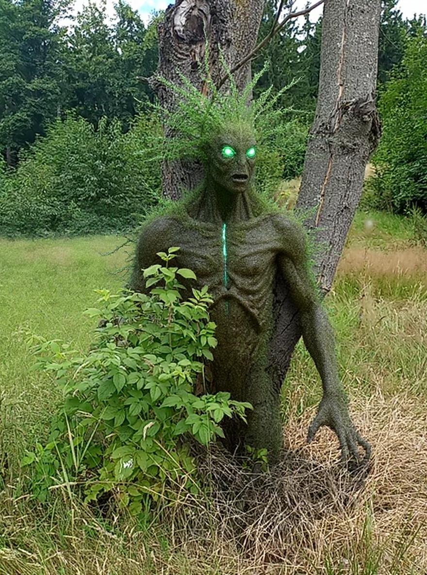 The Widmowiec Rozwidlenia is an epic rarity cryptid that appears only at the boundary between forest and meadow, where ancient trees fork above root clusters. This entity stands 1.8 meters tall when fully revealed, but most often remains partially merged with tree bark and shrubs, making it almost undetectable. Its body is a seamless fusion of wood and sinew, with limbs branching like twigs and leaves growing from its shoulders. Bioluminescent moss runs along its spine, pulsing faintly during daylight. The head is crowned with translucent, leaf-like fronds that sway even in still air, and its eyes resemble dew drops, reflecting the surroundings. The Widmowiec Rozwidlenia is a guardian of the edge habitat, emerging only when the ecological balance is threatened. It can dissolve into a mist of spores and reform elsewhere, a process made possible by a network of symbiotic mycorrhizal fungi within its tissues that allows near-instantaneous travel through the root systems. Its main strength is its unparalleled camouflage and ability to manipulate plant growth within a 10-meter radius. However, it is vulnerable to chemical pollutants and excessive sunlight, which disrupt its delicate bio-fungal symbiosis. Local legend says encountering the Widmowiec means the forest is either in grave danger or about to reveal an ancient secret.