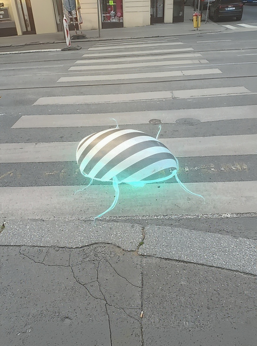 Přechodový Přelud, or the 'Crosswalk Wraith,' is an exceedingly rare urban cryptid said to manifest only at dusk in historic European cities. Averaging 1.2 meters in length, its translucent body appears as a series of alternating pale and shadowy stripes, perfectly mimicking crosswalk patterns. Its form is flat, subtly undulating, with semi-corporeal tendrils that extend to feel vibrations from footsteps. It feeds on residual kinetic energy from pedestrian crossings, which it stores in bioluminescent nodules lining its underside. Evolutionarily, its camouflage is so refined that most humans mistake fleeting glimpses for tricks of light or fading paint. Locals whisper that it bends time slightly around itself, creating a fraction-of-a-second delay for those who cross paths with it—explaining the sometimes 'lost' moments urbanites feel. Its main weakness is strong direct light, which disrupts its camouflage and forces it to flatten completely against the pavement. It thrives in areas with moderate foot traffic and old, weathered crossings, using its advanced chromatophores and quantum-mimetic skin to blend into both worn and freshly painted stripes. Sightings are considered omens of safe passage, but only for the truly observant.