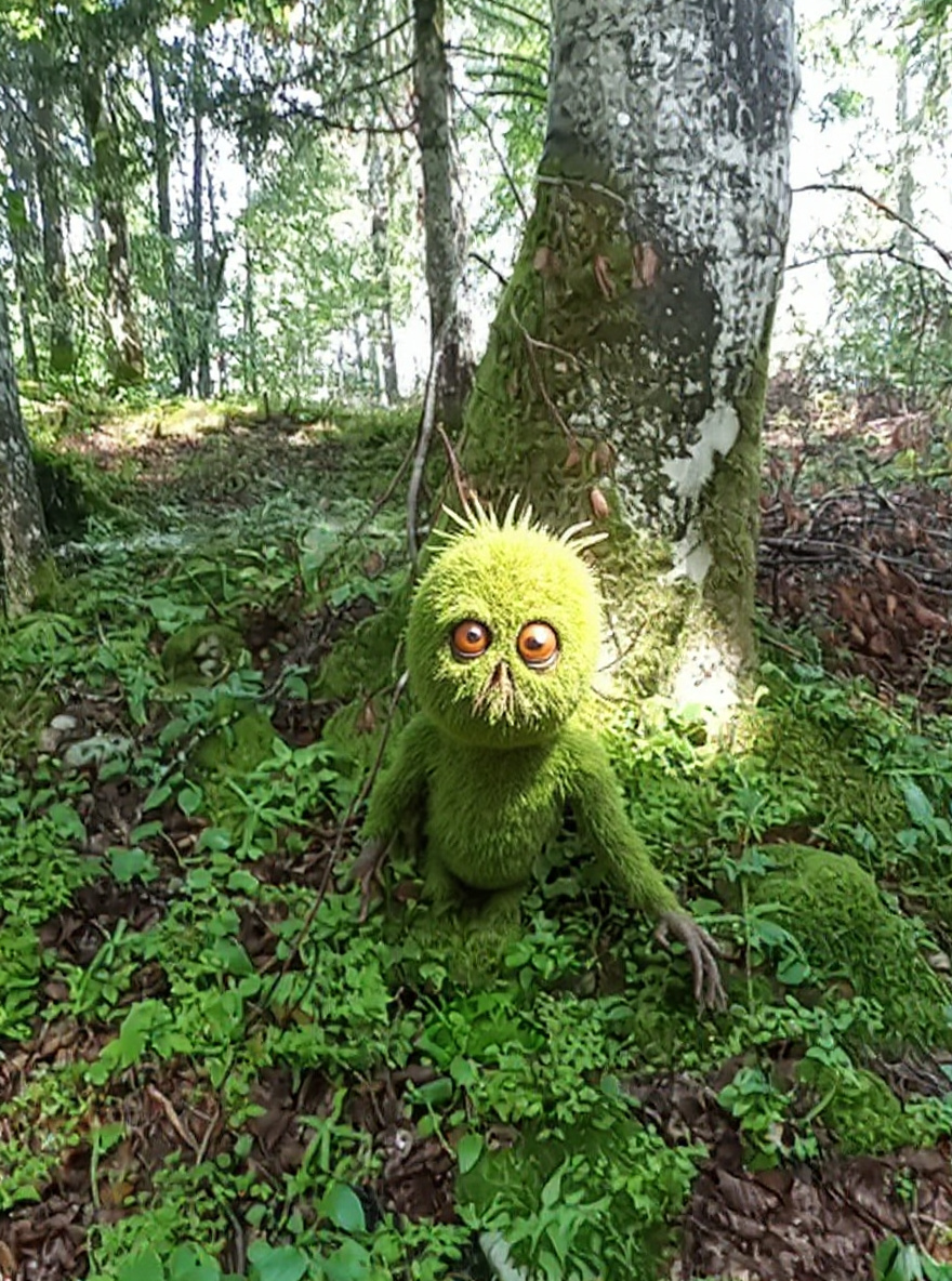 Le Farceur Mousseux, or the Mossy Prankster, is a legendary cryptid said to inhabit the ancient moss-laden forests of the Jura. Exceptionally rare, it is almost never seen directly due to its extraordinary camouflage: its body is covered in living moss, lichen, and tiny fungi, forming a symbiotic ecosystem. Standing about 0.6 meters tall, it resembles a hunched, vaguely humanoid figure with elongated, root-like fingers and glowing, amber eyes that mimic sunlit drops of resin. When threatened, it can rapidly blend into the mossy ground by shifting its coloration and emitting a musty, spore-laden 'laugh', causing mild disorientation and fits of giggling in nearby animals and humans. Evolutionarily, it is a hybrid between plant and animal, with chloroplasts in its skin allowing partial photosynthesis, explaining its preference for dappled light and humid environments. Despite its eerie look, it is known for harmless pranks—moving small objects, tickling hikers' ankles, and leaving intricate spiral patterns in the moss. Its main weakness is direct sunlight, which makes it sluggish and visible, while its strengths are camouflage, minor photosynthesis, and psychological defense via hallucinogenic spores. Some botanists believe its existence explains the sudden appearance of moss spirals and the local saying, "Watch your step, or the forest will laugh at you!"