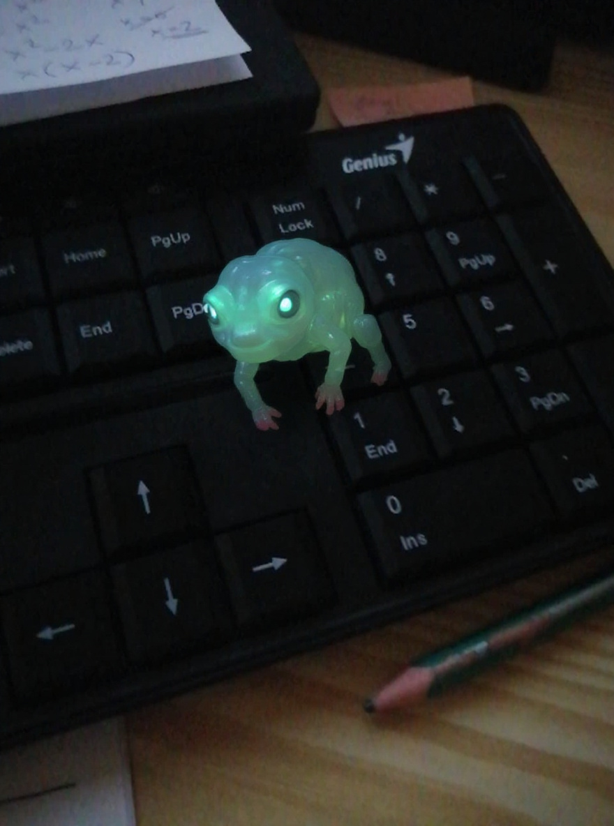 The Klávesový Šotek, or 'Keyboard Imp,' is a rarely observed but locally infamous cryptid believed to haunt workspaces, particularly those in rural Czechia where folklore blends with modern technology. It is said to resemble a tiny, impish creature, standing no taller than a pencil, with a body composed of semi-translucent, resin-like material that mimics the black plastic of keyboards. Its limbs are slim and jointed like the segments of a mechanical pencil, ending in fingers tipped with tiny, eraser-pink pads. Its head is slightly oversized, with luminous, phosphorescent eyes adapted for low-light scurrying. This cryptid is most active in the early morning or late evening, taking advantage of quiet, undisturbed desks. It is notorious for subtly rearranging office supplies—moving pencils, turning off num lock, or shifting papers—leading to the Czech saying, 'the keyboard imp strikes again' whenever such small mysteries occur. The Šotek's core strength is its near-invisibility: its body surface refracts light, blending perfectly with the matte sheen of modern keyboards, making it almost impossible to spot unless it moves. However, bright direct light renders it visible, which is why it prefers dim environments. The Šotek feeds on microcurrents generated by typing and the graphite residue left by pencils, using specialized dermal pads that can absorb both. Locals believe it brings good luck to diligent workers by correcting unnoticed typos, but it may also cause harmless mischief if ignored. Its evolutionary adaptation to electronics could be explained by a unique symbiotic relationship with electromagnetic fields and carbon compounds, drawing on both for sustenance and camouflage. Sighting is extremely rare, making this a legendary cryptid.