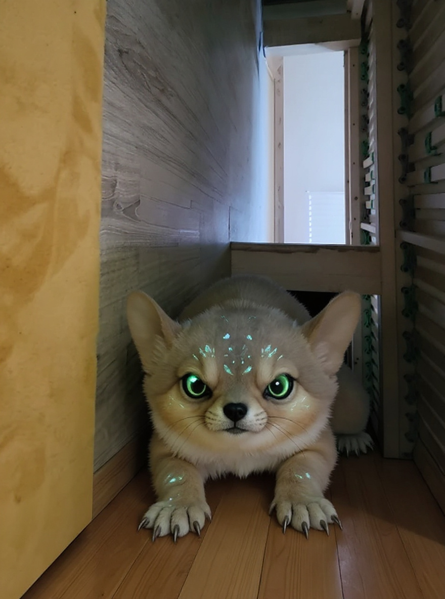 The Podpostelník měšťanský (literally 'Bourgeois Underbedder') is an exceedingly rare urban cryptid known for its uncanny ability to evade detection within the confines of residential homes in Central Europe, particularly in the Plzeň region. Averaging 40 cm in length, this creature has evolved fur and skin patterns that perfectly mimic common household animals, especially domestic dogs, but with subtle distinctions: its fur can subtly shift hue and texture in response to its environment, blending seamlessly with surrounding dust, shadows, and even mimicking the scent of household fabrics. Its elongated, flexible body allows it to flatten itself almost two-dimensionally, sliding under beds and furniture with ease. Unlike real animals, its eyes reflect ambient light in complex fractal patterns, creating brief but unexplainable glimmers when caught in peripheral vision—a likely source of local tales about 'the glimmer under the bed.' The Podpostelník is nocturnal and feeds on ambient household anxiety, allegedly reducing stress levels in homes it inhabits, a phenomenon recently studied with surprising results. Its presence is often marked by displaced socks, unexplained warmth on cold floors, and a gentle thrumming sound at twilight. Its greatest strength is its perfect mimicry, while its main weakness is direct sunlight, which temporarily renders it immobile and visible. The Podpostelník’s existence is woven into Czech folklore, where it is considered a benevolent household guardian, and legend holds that spotting one brings a season of restful sleep.