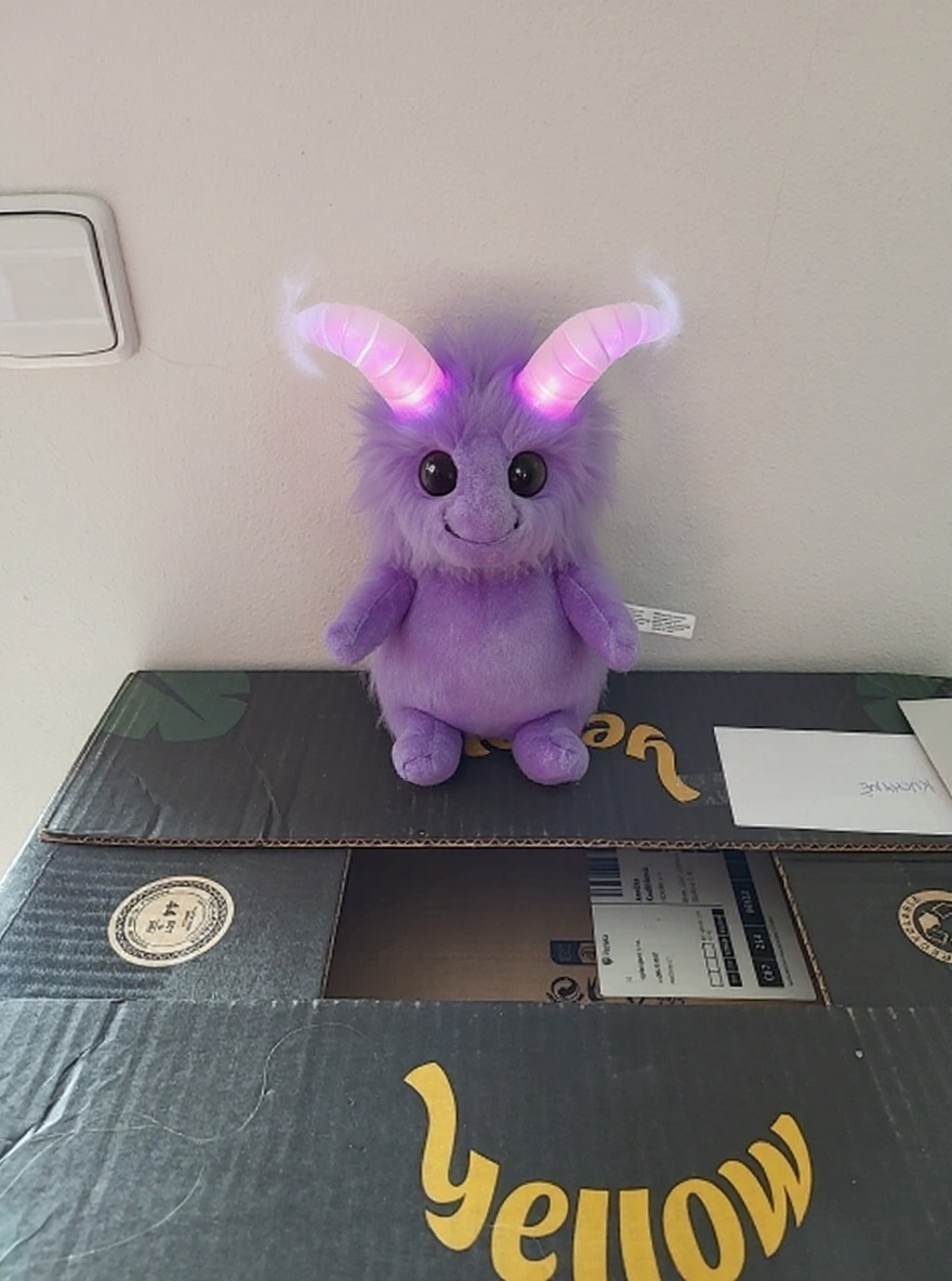 The Škatulový Mazel, or 'Box Snuggler,' is a cryptid of legendary rarity, known to urban legends in Plzeň and whispered about in the older neighborhoods. This elusive entity is a master of mimicry, able to perfectly replicate the appearance, texture, and even scent of plush toys and household objects. The Mazel typically manifests as a plump, fluffy creature with vibrant, unnatural coloration—purples and pinks being most common, echoing the playful colors preferred by local children. Its most distinctive features are its exaggerated, spiraled horns and wide, expressive eyes, which, when viewed directly, seem to follow the observer with unsettling accuracy. Mazels are nocturnal and semi-corporeal, phasing between the physical and the intangible to evade detection. They nest in boxes, especially in transitional spaces like hallways or storage rooms, feeding on ambient emotional energy—particularly nostalgia and the comfort of childhood memories. The Škatulový Mazel is said to bring good luck to households it chooses to inhabit, but can also cause minor mischief: misplaced keys, mysteriously rearranged objects, and the gentle sensation of being watched. Its plush-like body is covered in fine, adaptive fibers with chromatophores that allow rapid color and texture changes, a trait evolved to blend into urban environments and avoid the eyes of adults. Strangely, the Mazel emits a faint electromagnetic field, which interferes with digital devices nearby, explaining reports of flickering lights and static. Its only weakness is direct sunlight, which causes it to become immobile and indistinguishable from a regular toy until dusk returns. No confirmed specimen has ever been captured, but countless blurry photos and anecdotal sightings contribute to its mythic status.
