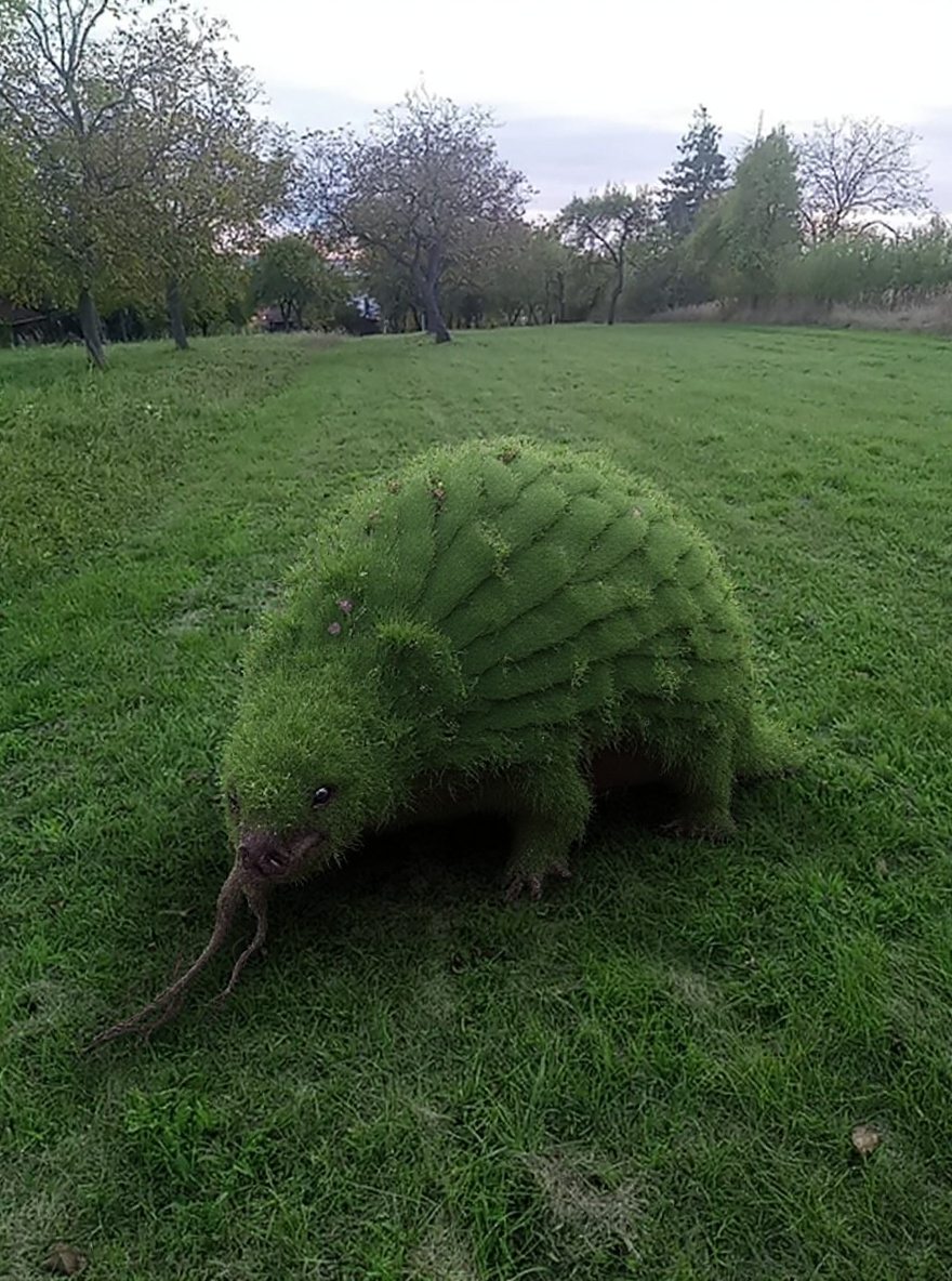 The Zelený Luskouník (Luskoradix camuflorum) is an extraordinarily rare cryptid reported only in select South Moravian meadows and old orchards. It is a semi-mythical burrowing creature, approximately 1.2 meters long when fully extended, with a body resembling a seamless blend of pangolin scales and dense turf grass. Each scale mimics the look and texture of the local grass species, while its underbelly is coated in loamy, root-filled skin that exudes a petrichor-like scent. The Luskouník's head is wedge-shaped and covered in mossy filaments, with eyes that resemble dewdrops and are nearly invisible among foliage. Two elongated, root-like whiskers detect vibrations and soil chemistry, allowing it to sense both danger and changes in weather far in advance. Behaviorally, the Luskouník is nocturnal and emerges primarily during overcast or rainy twilight, feeding on earthworms, fungal mycelia, and decomposing plant matter. It moves with astonishing silence, undulating its body to blend with shifting grass patterns, leaving only faint, temporary discolorations in the turf as a sign of its passage—these are often mistaken for animal trails or fairy rings. It is said to possess the ability to accelerate grass growth in its wake, due to symbiotic root bacteria it releases from its skin. If startled, it can flatten into the ground, making itself nearly invisible except for a faint shimmer as its scales refract ambient light, a phenomenon explained by intricate nano-structures in its grasslike armor. Legend holds that the Luskouník is a guardian of healthy meadows, and farmers consider its rare appearance a sign of coming rain and soil fertility. Its main weaknesses are sunlight and open, plowed soil, which disrupt its camouflage. Despite its size, it is nearly impossible to photograph directly—hence the many blurry or empty photos in cryptozoological reports. Evolutionarily, it is theorized to have diverged from ancestral autonomous turf mats, gradually developing animal-like mobility and sensory organs in response to the region's seasonal flooding and drought cycles.